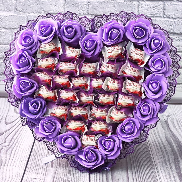 Малиновий букет серце із цукерок подарунок для дівчини чи жінки на 8 березня день закоханих