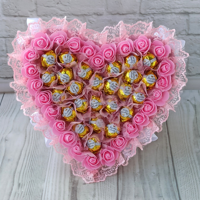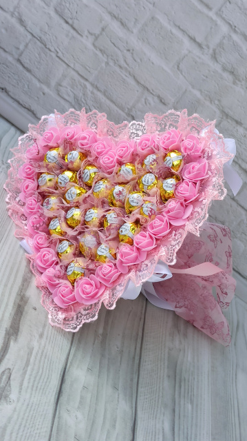 Рожевий букет із цукерками в формі серця, подарунок для коханої на день святого Валентина, Кременчук