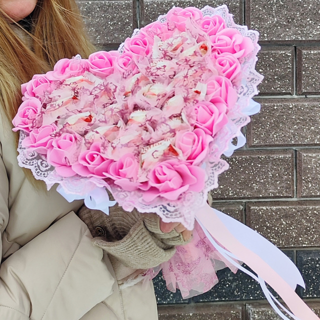 Купити солодки букет із цукерками як подарунок на День закоханих, 8 Березня або для коханої дівчини можна в нашому онлайн-магазині з доставкою по Україні.
