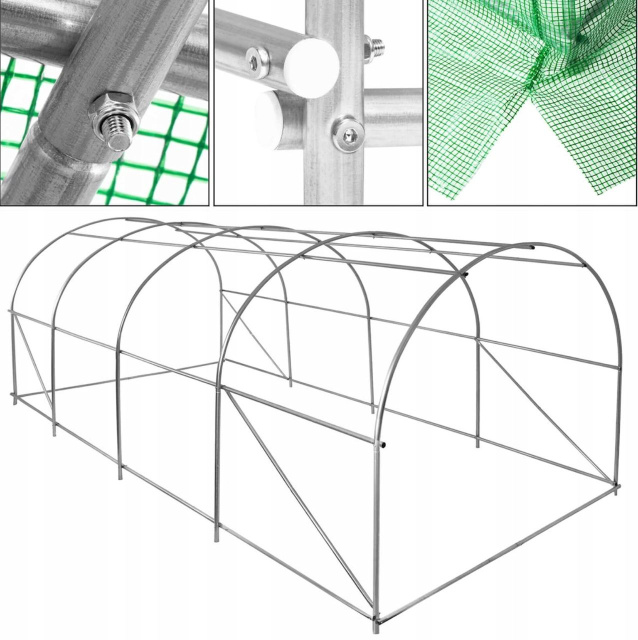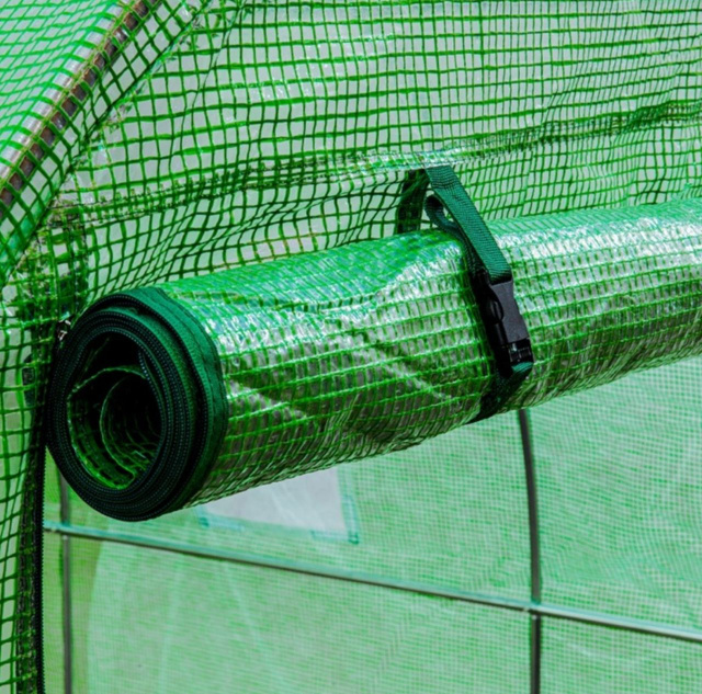 Теплиця розміром 10м² забезпечить ідеальні умови для розвитку рослин: захистить їх від несприятливого впливу погоди, прискорить і підвищить ефективність посівів, а також продовжить сезон. Дозволяє регулювати температуру, вологість і циркуляцію повітря, щоб створити правильний мікроклімат для ваших рослин. Завдяки розмірам дозволяє вільно пересуватися і працювати. Широкі рулонні двері з засувками підвищують функціональність теплиці. Усередині є дві поперечини, встановлені у верхній частині рами, які забезпечать стійкість, а також дозволять підв'язати мотузки для витких рослин. Матеріали, використані при будівництві, відрізняються високою якістю.