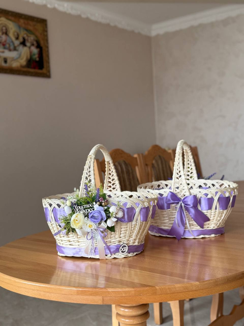 Кошик «Пасхальний» 1 шт 40x28x22 см з декором Бузковий-2 плетений з натуральної відбіленленої лози для Великодня, Кременчук