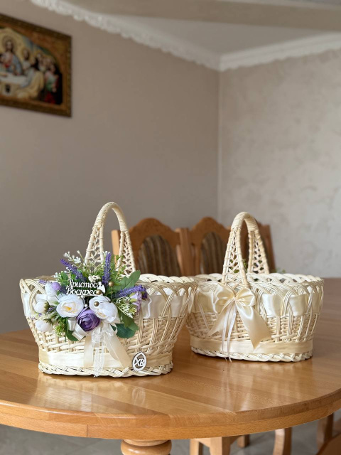 Купити міцну та якісну корзинку для Пасхи з натуральної вибіленої лози з декором ви можете в нашому інтернет-магазині — ідеальний великодній кошик для продуктів, дому та святкового настрою.