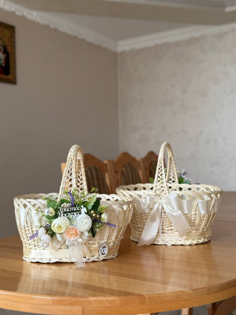 Купити міцну та якісну корзинку для Пасхи з натуральної вибіленої лози з декором ви можете в нашому інтернет-магазині — ідеальний великодній кошик для продуктів, дому та святкового настрою.
