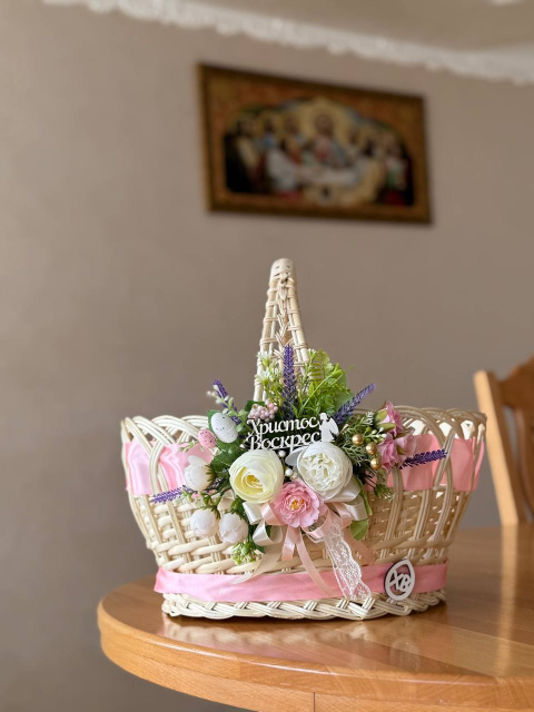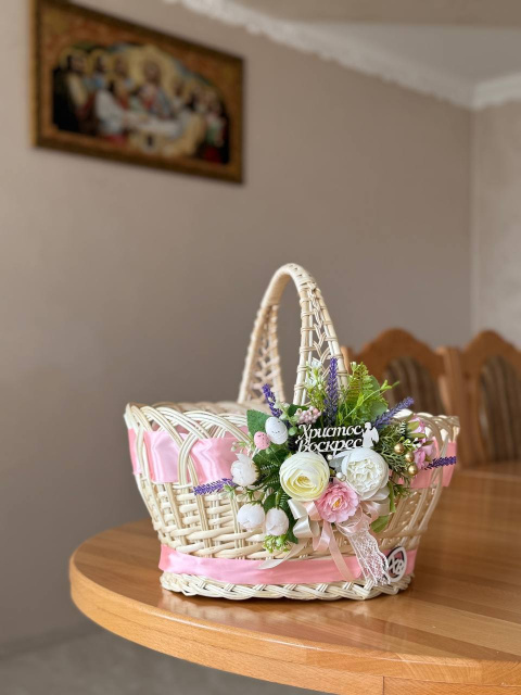 Купити міцну та якісну корзинку для Пасхи з натуральної вибіленої лози з декором ви можете в нашому інтернет-магазині — ідеальний великодній кошик для продуктів, дому та святкового настрою.