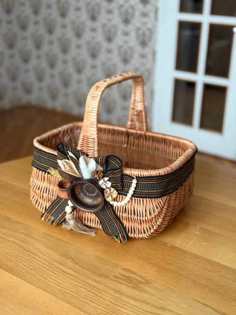 Світо-коричневий кошик на Пасху Голендер з декором в етностилі з натуральної лози — ручна робота