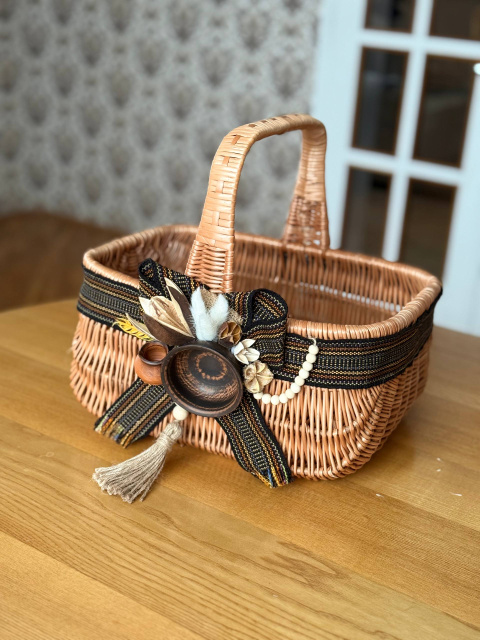 Купити міцну та якісну корзинку для Пасхи з натуральної лози Голендер з декором в етностилі ви можете в нашому інтернет-магазині — ідеальний великодній кошик для продуктів, дому та святкового настрою.