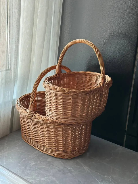 Великодній набір з натуральної лози — це поєднання українських традицій, естетики та практичності. Два кошики різного розміру ідеально підходять для освячення великодніх страв, святкового декору, зберігання продуктів або використання в побуті. Гармонійний комплект виглядає стильно та святково, а також зручно підходить для родини.