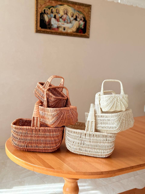 Замовляйте набір міцних та якісних великодніх кошиків з натуральної лози — практичне та стильне рішення для святкового столу, дому й подарунків.