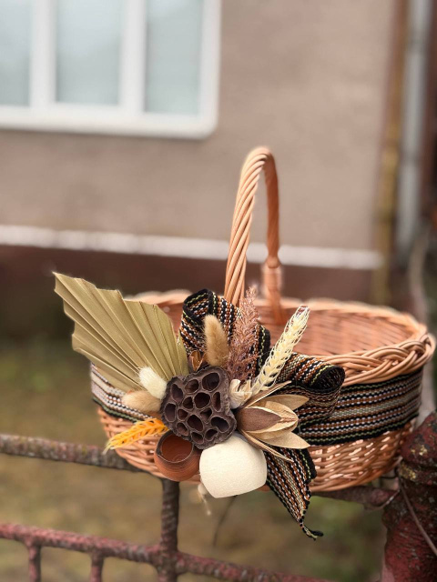 Кошик для Пасхи з натуральної лози з декором в етностилі — ручна робота