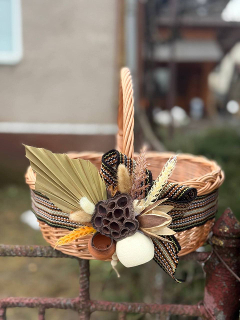 Ця пасхальна корзинка з лози створює атмосферу тепла й затишку у домі та підкреслює святковий настрій Великодня. Завдяки щільному плетінню кошик виглядає надійно, акуратно та святково, а відтінок підкреслює його охайний та естетичний зовнішній вигляд.