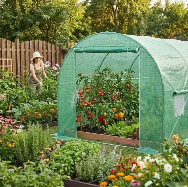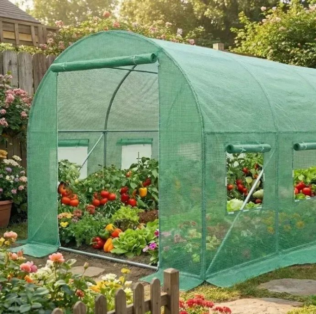 Сучасна садова теплиця з армованою плівкою UV-4 створює ідеальний мікроклімат для вирощування овочів, зелені, квітів та розсади. Завдяки посиленому каркасу з оцинкованої труби 25 мм конструкція витримує вітер, дощ та перепади температур.