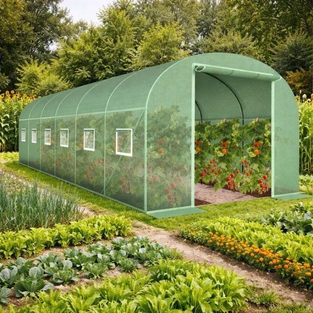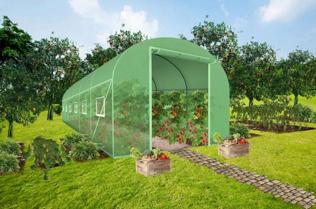 Купити теплицю або парник 18 м² для дачі, саду чи дому — ідеальне рішення для вирощування овочів, помідорів, квітів і розсади; садова оцинкована теплиця з UV-захистом забезпечує стабільний мікроклімат, довговічність та зручність у використанні.