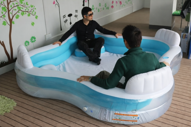 Виготовлений із міцного вінілу, має надувні борти та стійку конструкцію. Легко встановлюється та не займає багато місця у складеному вигляді.