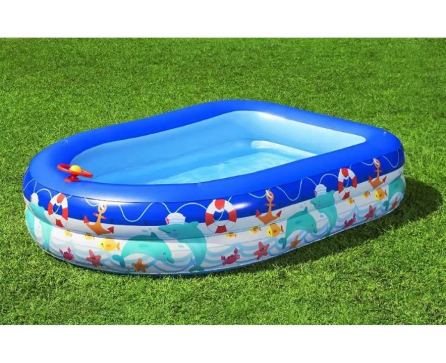 Надувний дитячий басейн Bestway 54370 — це яскравий ігровий простір для дітей, який перетворює звичайне купання на справжню морську пригоду. Ідеально підходить для відпочинку на подвір’ї або дачі.