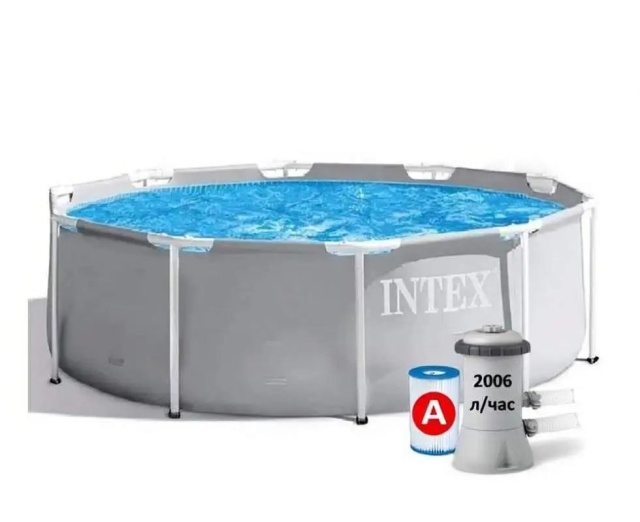 Intex 26706ND (26706SC) 305×99 см круглий каркасний басейн Prism Frame Pool сірий з фільтр насосом 2006 л/год, Кременчук