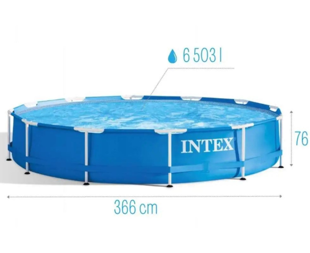 Каркасний басейн Intex 28212 круглий Metal Frame Pool — це надійний, міцний та якісний басейн збільшеного діаметру для комфортного літнього відпочинку всієї родини. Завдяки діаметру 366 см басейн просторий і підходить як для дітей, так і для дорослих.