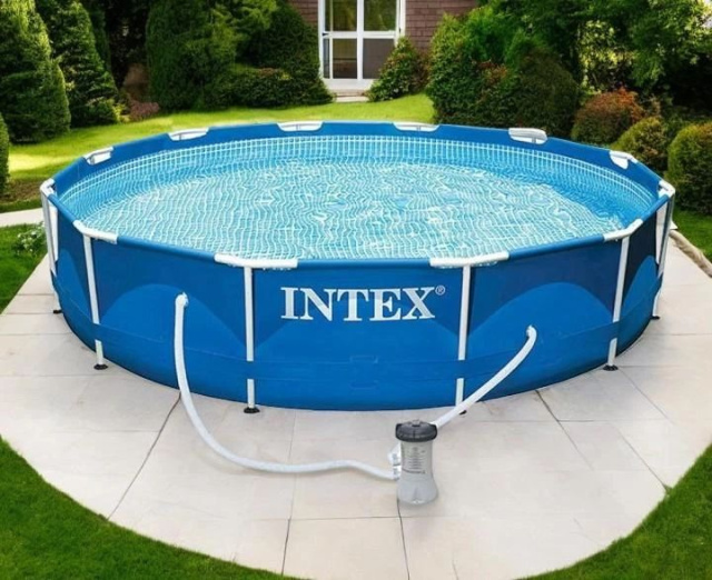 Intex 28212 366×76 см круглий каркасний басейн Metal Frame Pool синій з фільтр насосом 2006 л/год, Кременчук